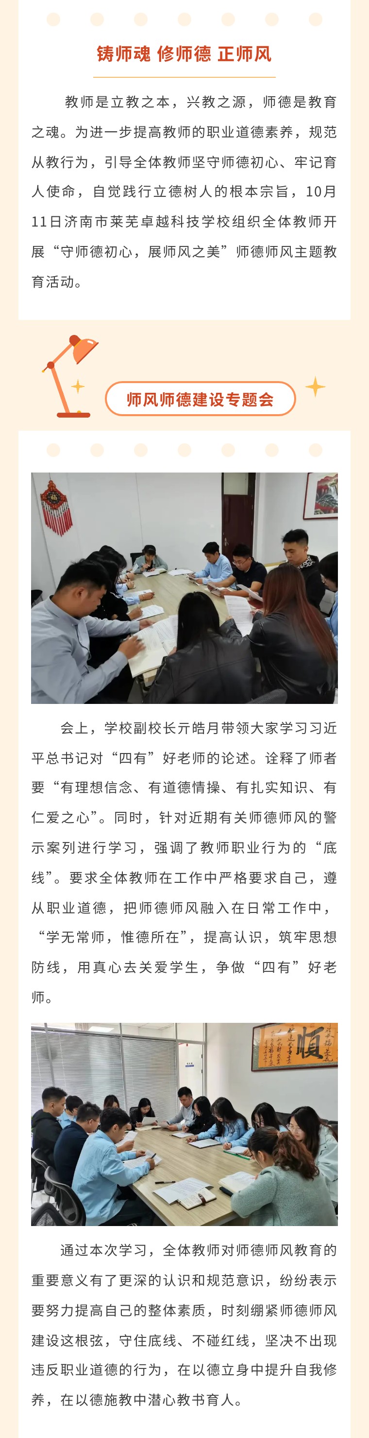 守師德初心,展師風(fēng)之美———濟(jì)南市萊蕪卓越科技學(xué)校(森優(yōu)教育集團(tuán)單招/綜評(píng)校區(qū))召開師德師風(fēng)專題會(huì)議