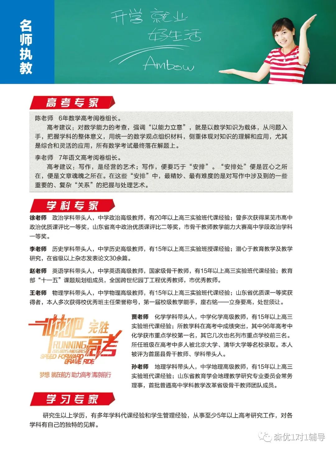老師好:學(xué)科名師全職任教,均有高級職稱,高三實驗班帶班經(jīng)驗均在15年以上。